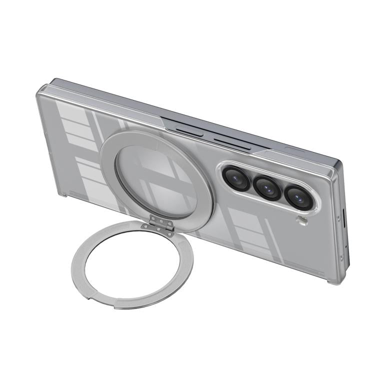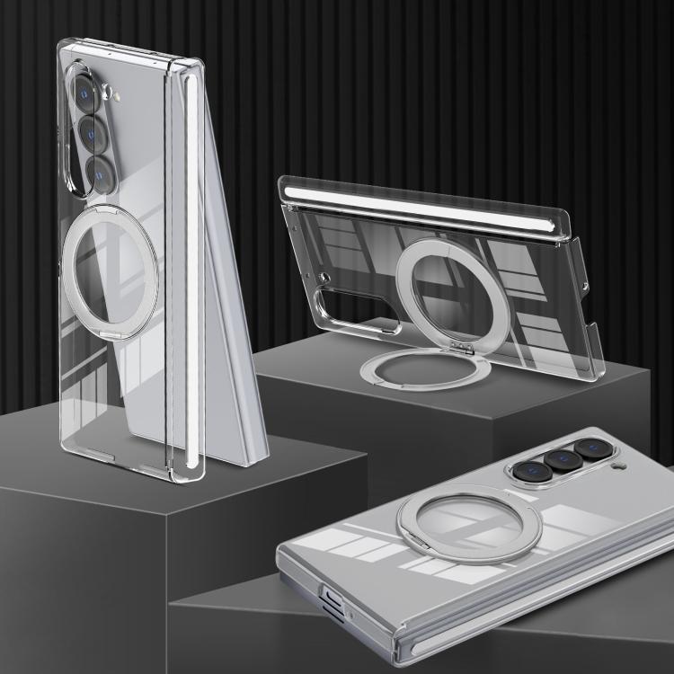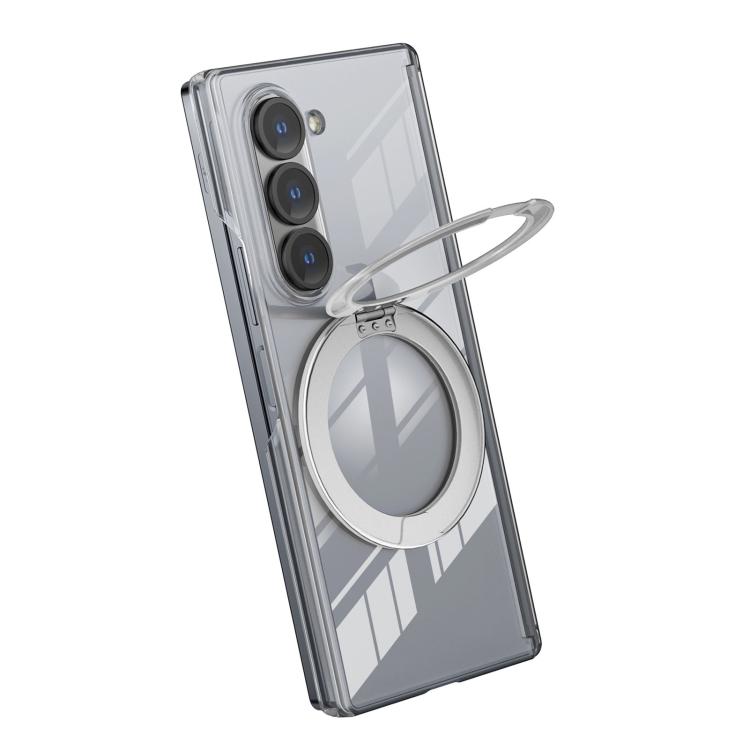 For Samsung Galaxy Z Fold5 Aluminum Alloy Holder MagSafe Crystal Hinge Phone Case(Silvery)