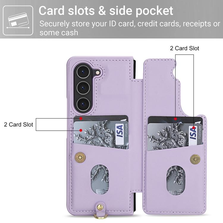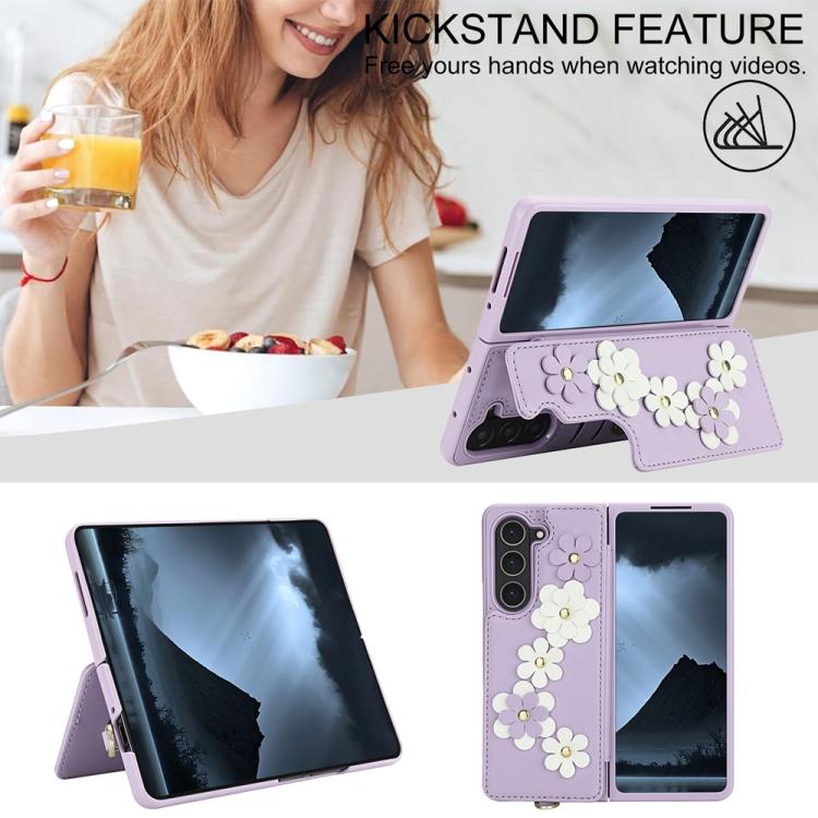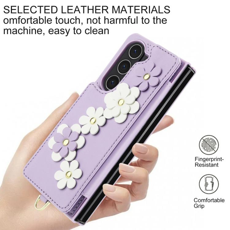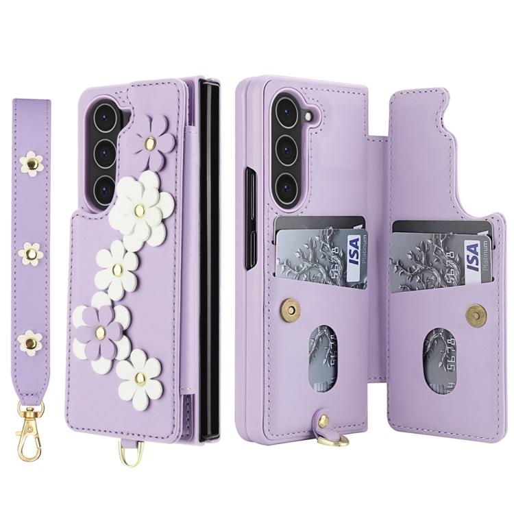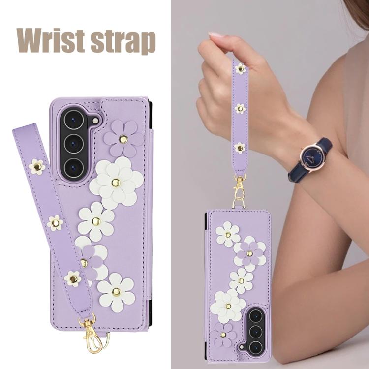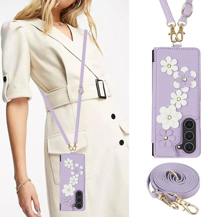 For Samsung Galaxy Z Fold5 Crossbody Flower Pattern Leather Phone Case(Purple)