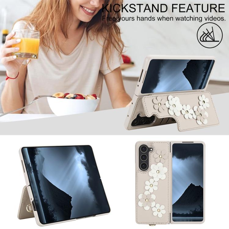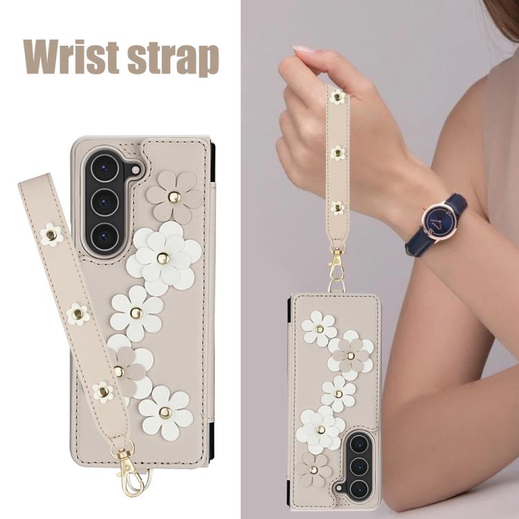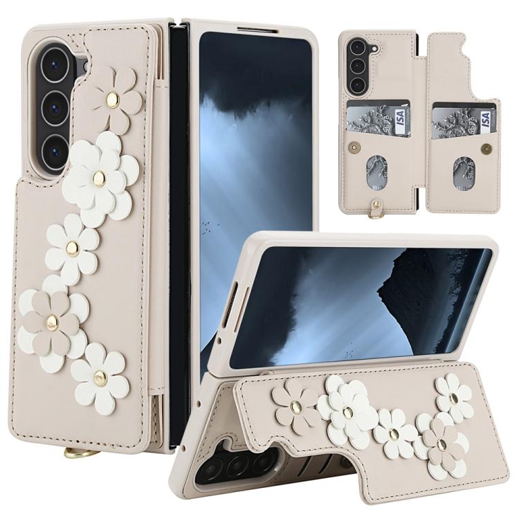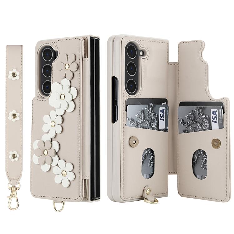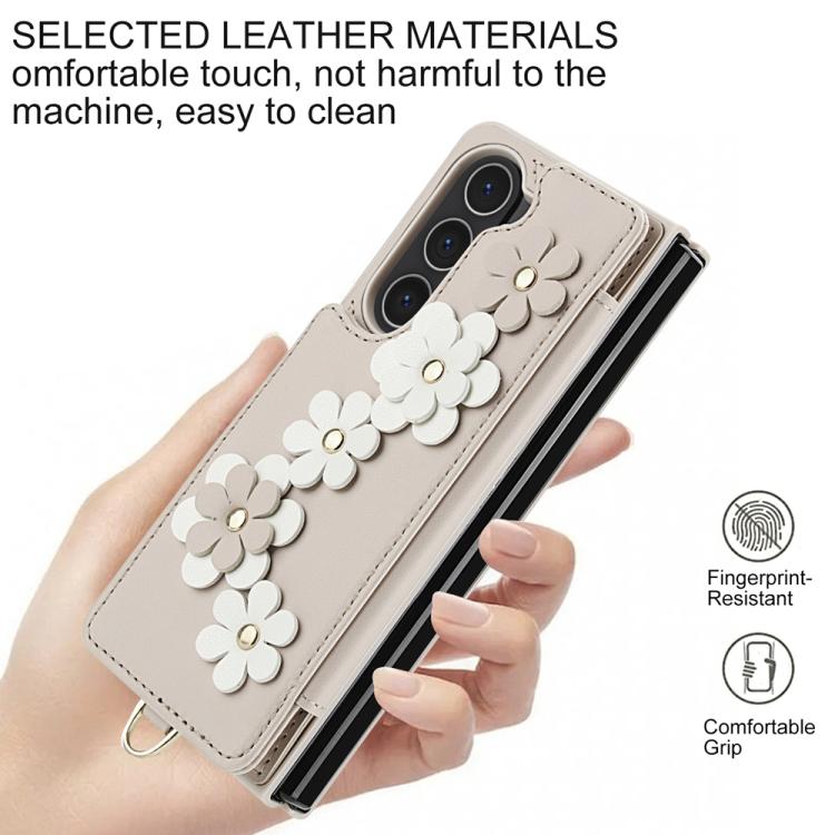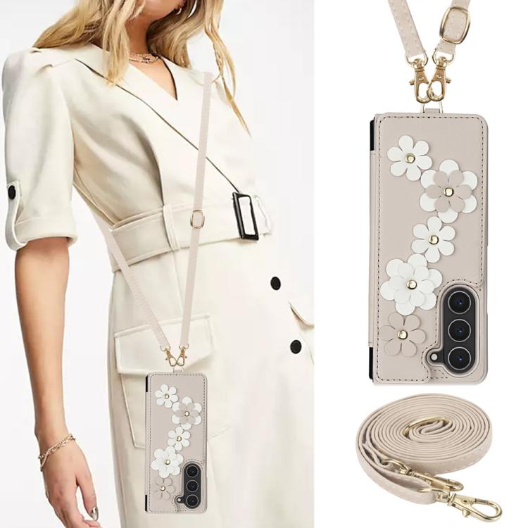 For Samsung Galaxy Z Fold5 Crossbody Flower Pattern Leather Phone Case(White)