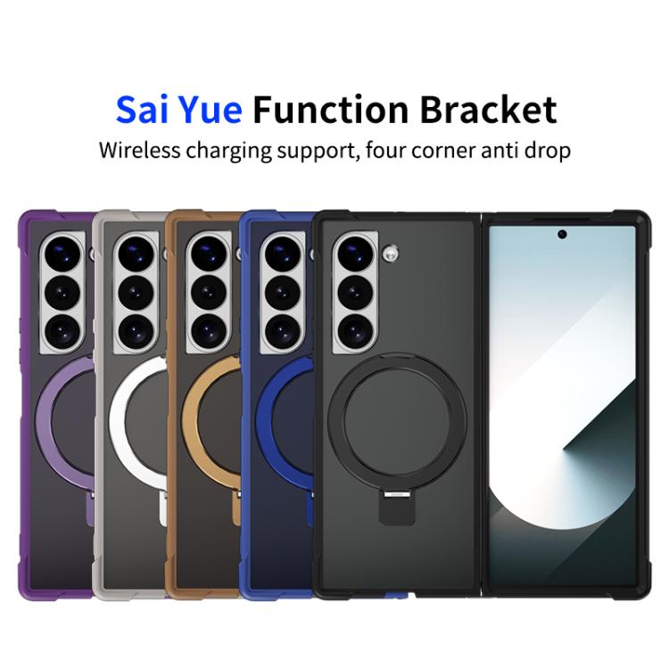 For Samsung Galaxy Z Fold5 Four-corner Shockproof MagSafe Holder Phone Case(Blue)