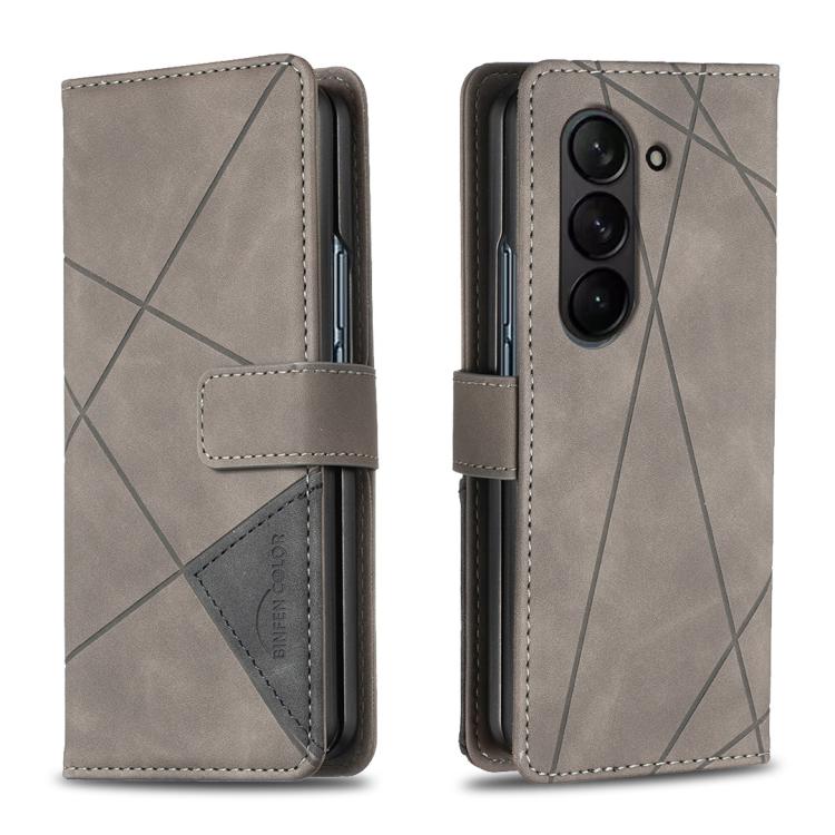 For Samsung Galaxy Z Fold5 Magnetic Buckle Rhombus Texture Leather Phone Case(Grey)