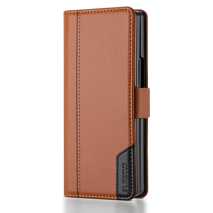 For Samsung Galaxy Z Fold5 N.BEKUS P3 RFID Stitching Magnetic Flip Leather Phone Case(Brown)