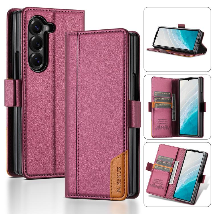 For Samsung Galaxy Z Fold5 N.BEKUS P3 RFID Stitching Magnetic Flip Leather Phone Case(Wine Red)
