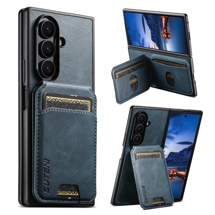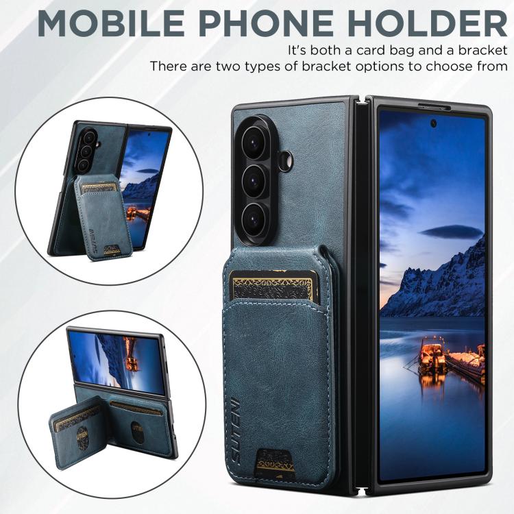 For Samsung Galaxy Z Fold5 Suteni H02 Leather Wallet Stand Back Phone Case(Blue)