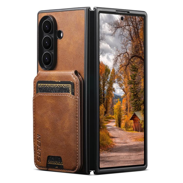 For Samsung Galaxy Z Fold5 Suteni H02 Leather Wallet Stand Back Phone Case(Brown)