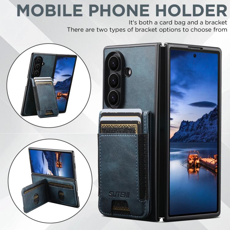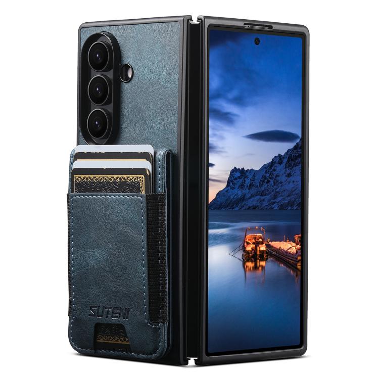 For Samsung Galaxy Z Fold5 Suteni H03 Oil Wax Leather Wallet Stand Back Phone Case(Blue)