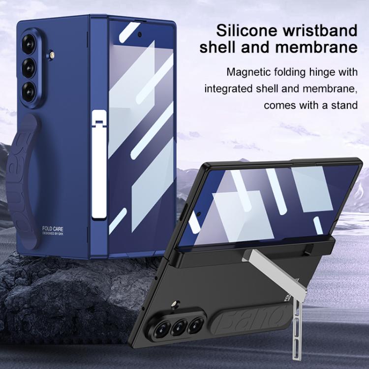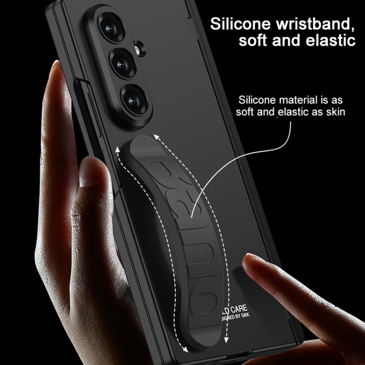 For Samsung Galaxy Z Fold7 5G GKK Integrated Magnetic Folding Silicone Wristband Phone Case with Side Bracket(Frost Green)