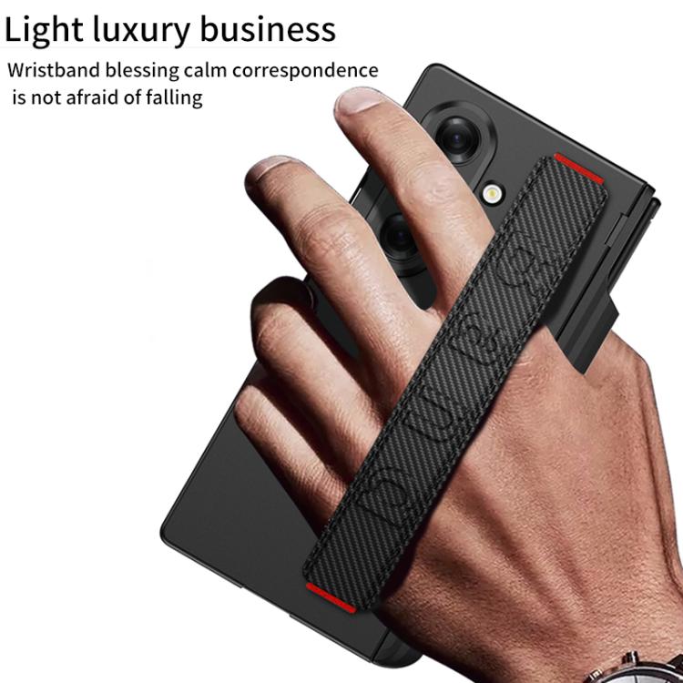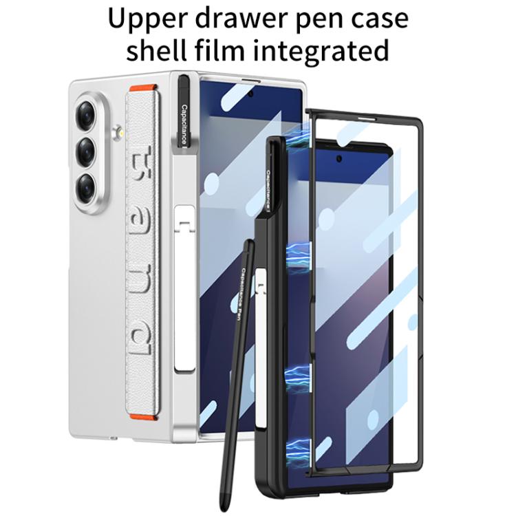 For Samsung Galaxy Z Fold7 5G GKK Integrated Magnetic Hinge Folding Holder Phone Case with Wrist Strap & Pen Holder(Shadow Blue)