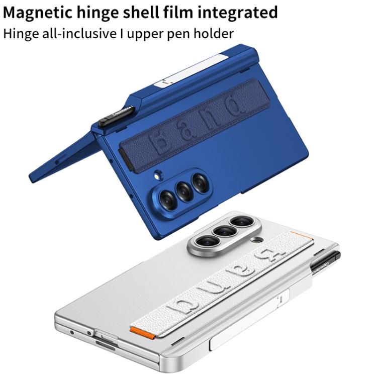 For Samsung Galaxy Z Fold7 5G GKK Integrated Magnetic Hinge Folding Holder Phone Case with Wrist Strap & Pen Holder(Titanium Grey)