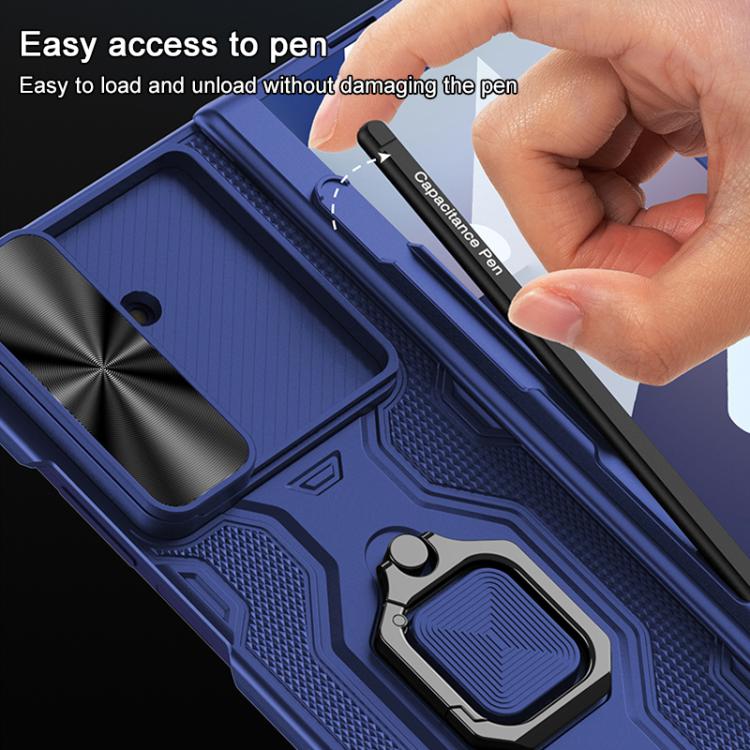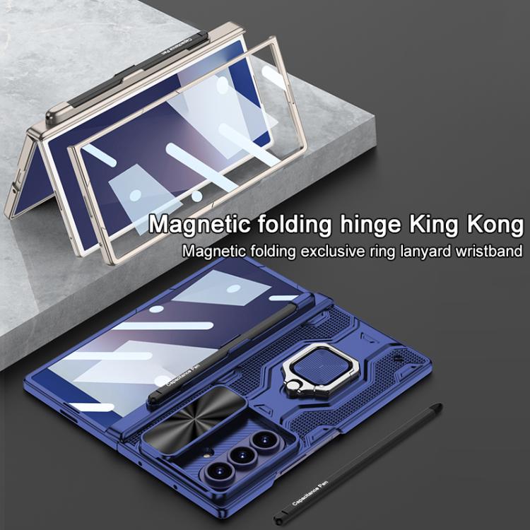 For Samsung Galaxy Z Fold7 5G GKK Magnetic Folding Hinge Diamond Phone Case with Pen Slot, Including Pen(Black)