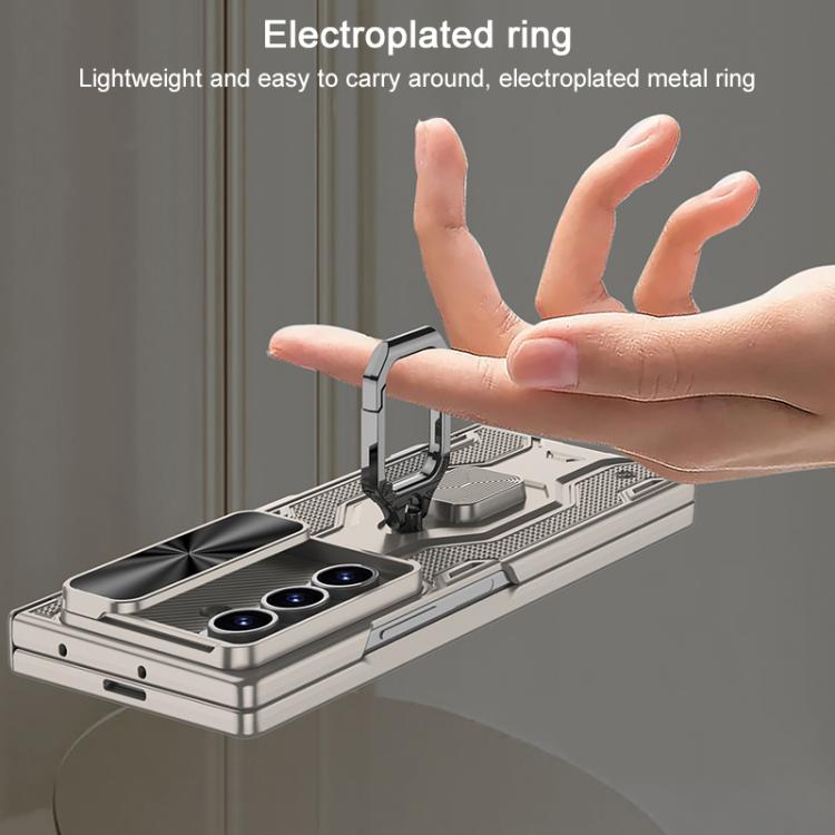 For Samsung Galaxy Z Fold7 5G GKK Magnetic Folding Hinge Diamond Phone Case with Pen Slot, Including Pen(Grey)