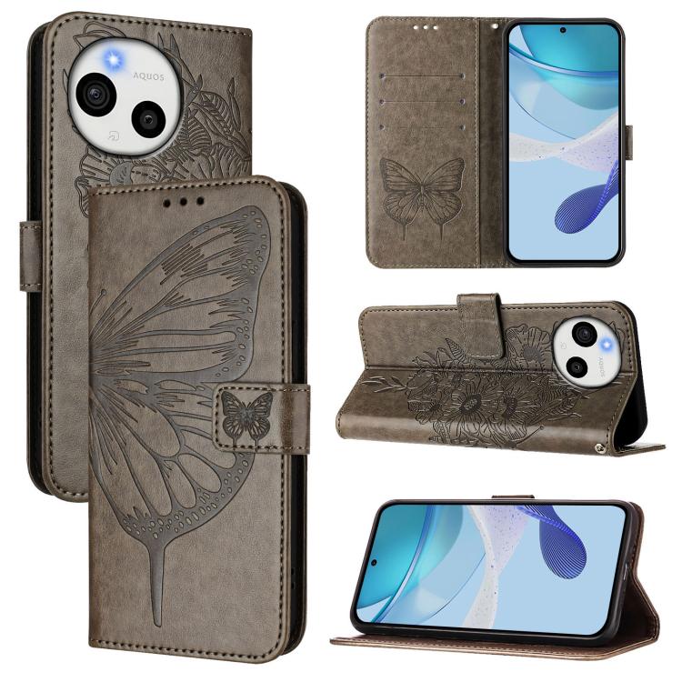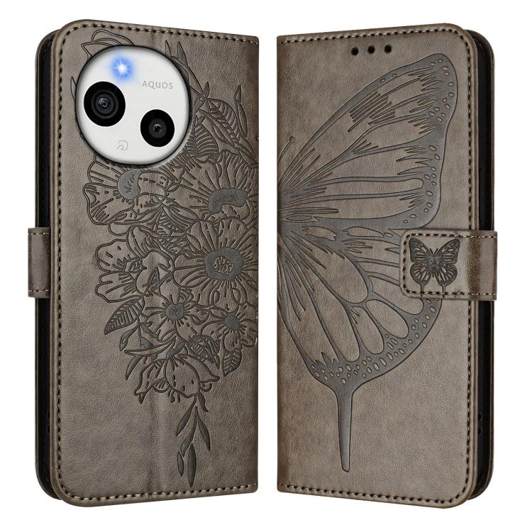 For Sharp Aquos sense10 Embossed Butterfly Leather Phone Case(Grey)