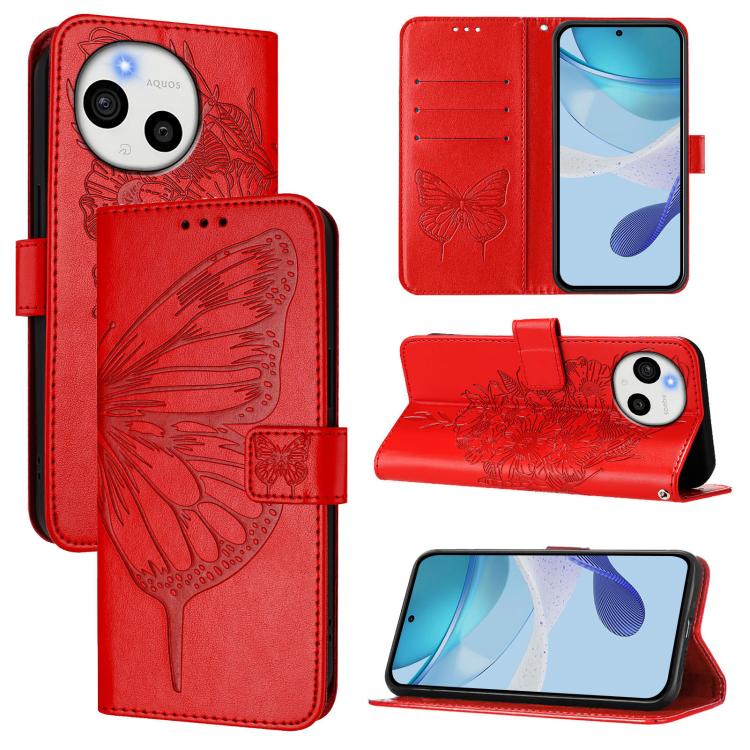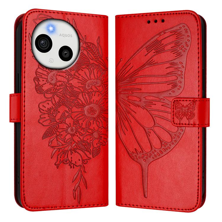 For Sharp Aquos sense10 Embossed Butterfly Leather Phone Case(Red)