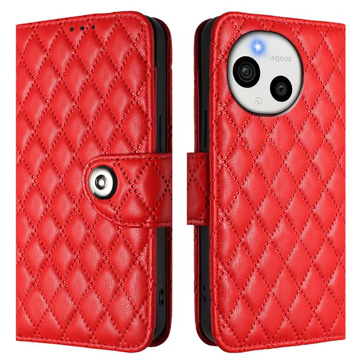 For Sharp Aquos Sense10 Rhombic Texture Flip Leather Phone Case with Lanyard(Red)