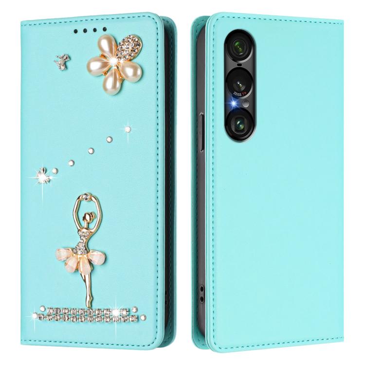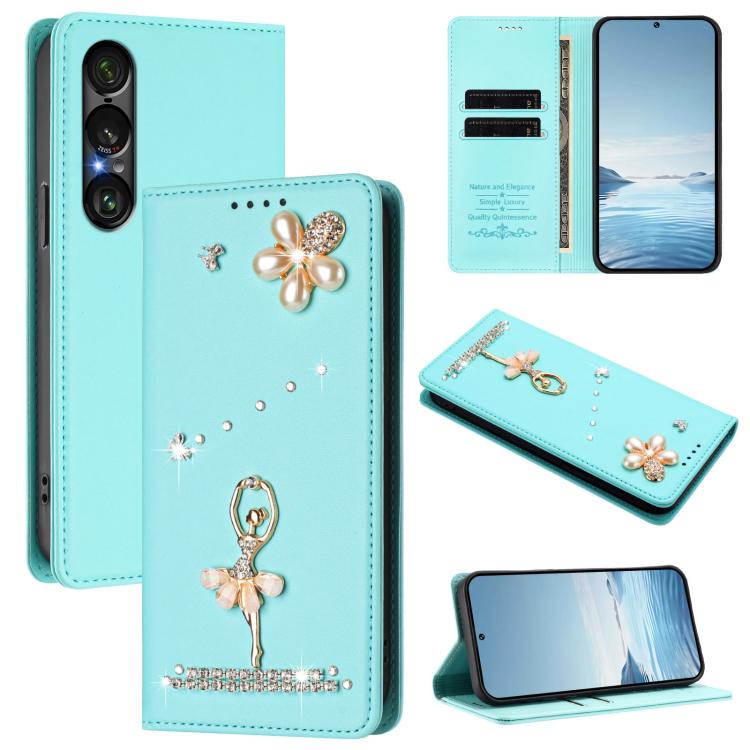 For Sony Xperia 1 VII Ballet Girl Diamond Studded RFID Vegan Leather Phone Case(Mint Green)