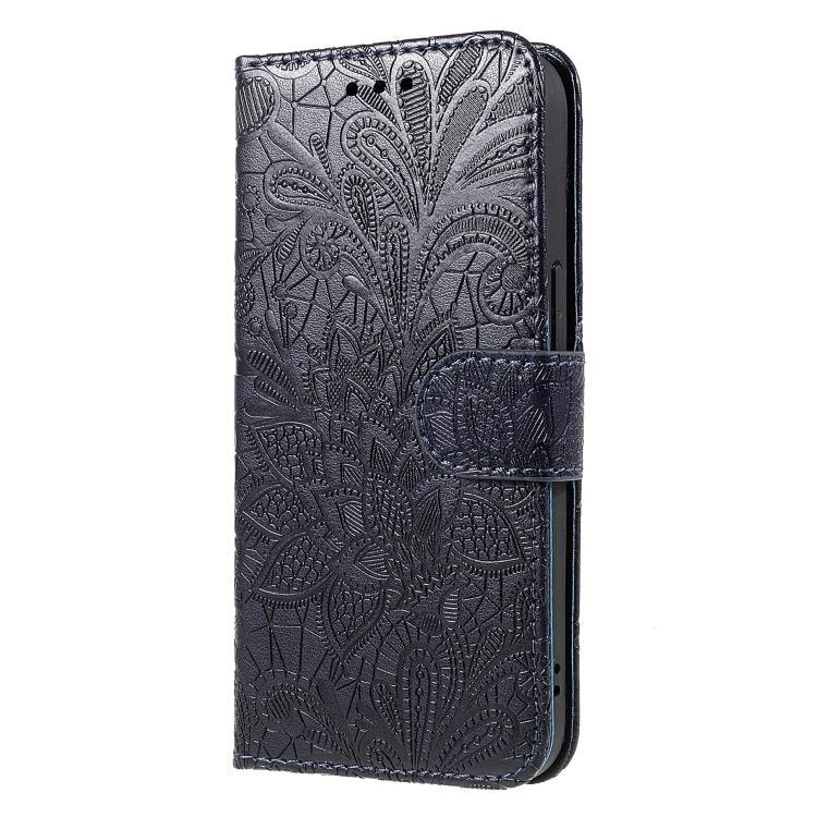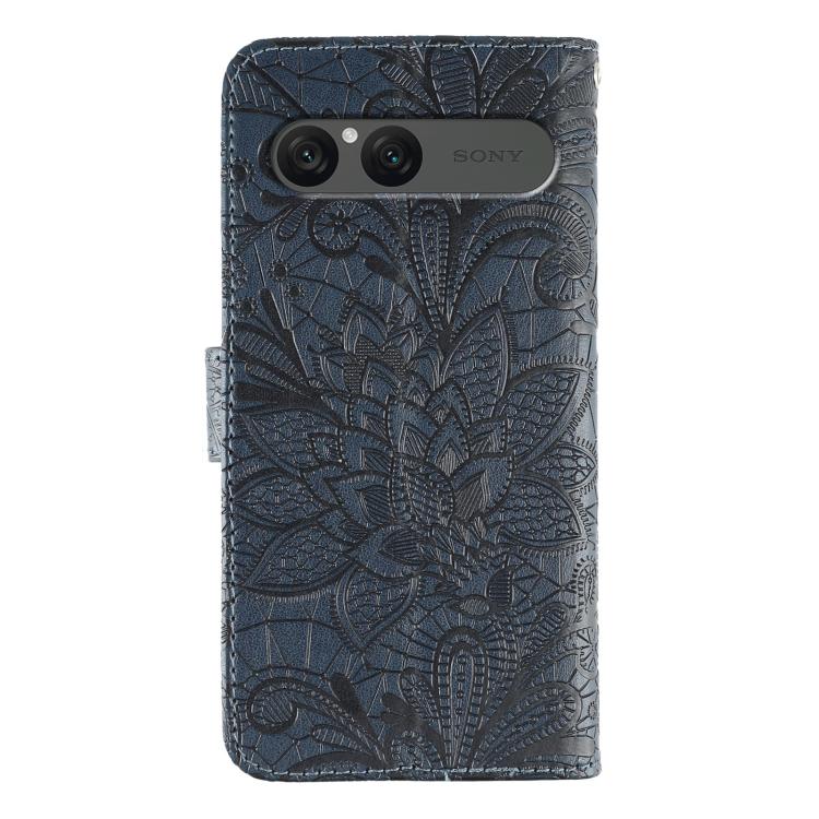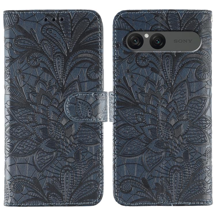 For Sony Xperia 10 VII Lace Flower Embossing Flip Leather Phone Case(Dark Blue)
