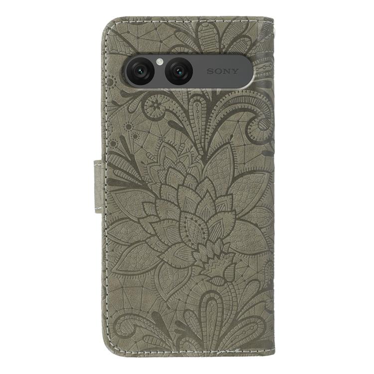 For Sony Xperia 10 VII Lace Flower Embossing Flip Leather Phone Case(Grey)