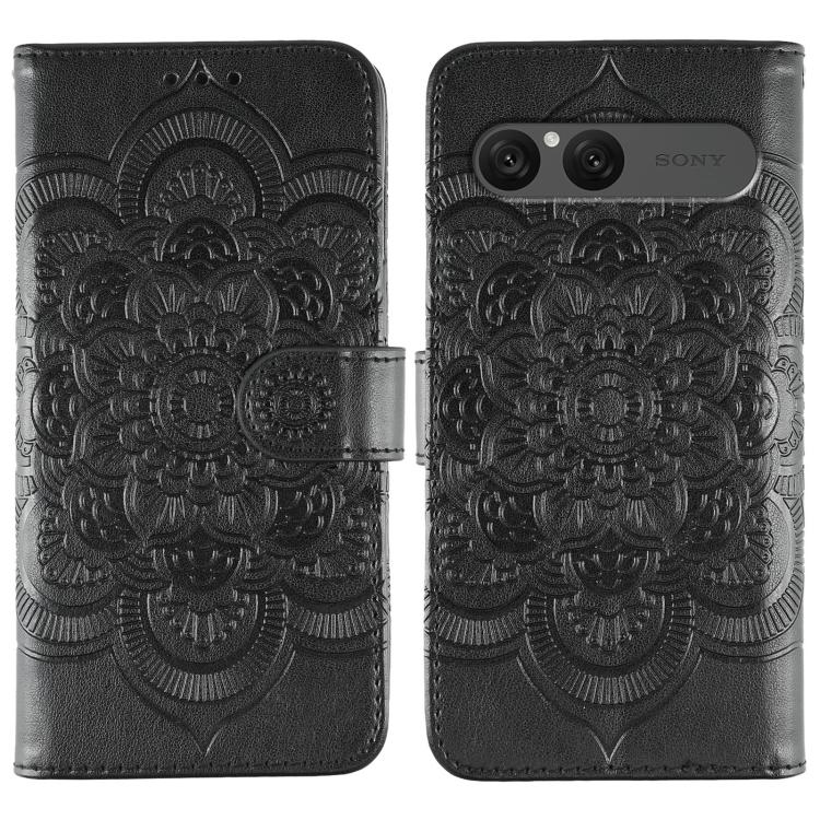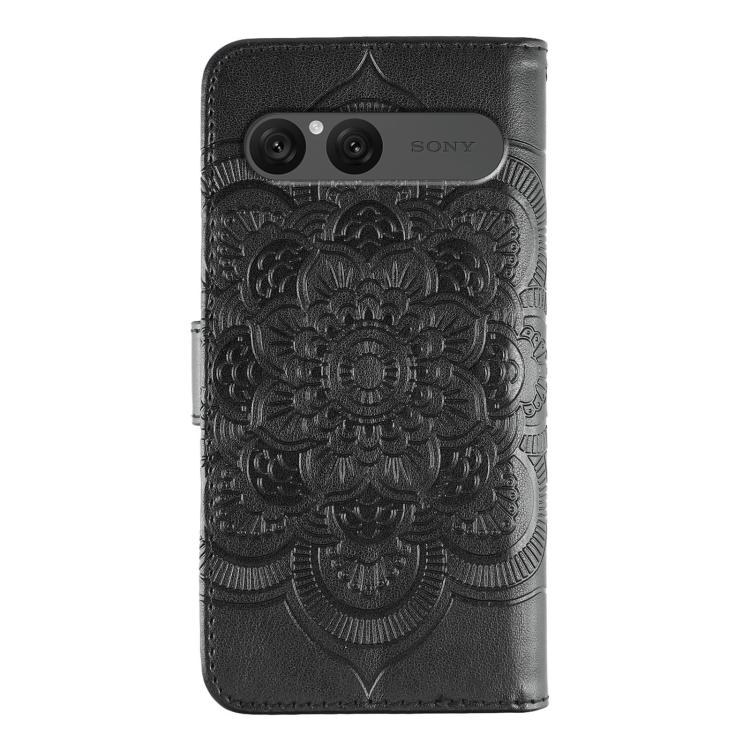 For Sony Xperia 10 VII Sun Mandala Embossing Pattern Phone Leather Case(Black)
