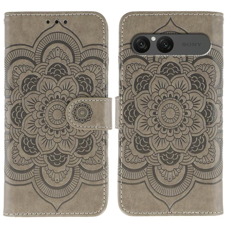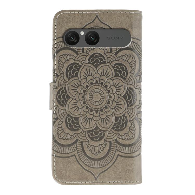 For Sony Xperia 10 VII Sun Mandala Embossing Pattern Phone Leather Case(Grey)