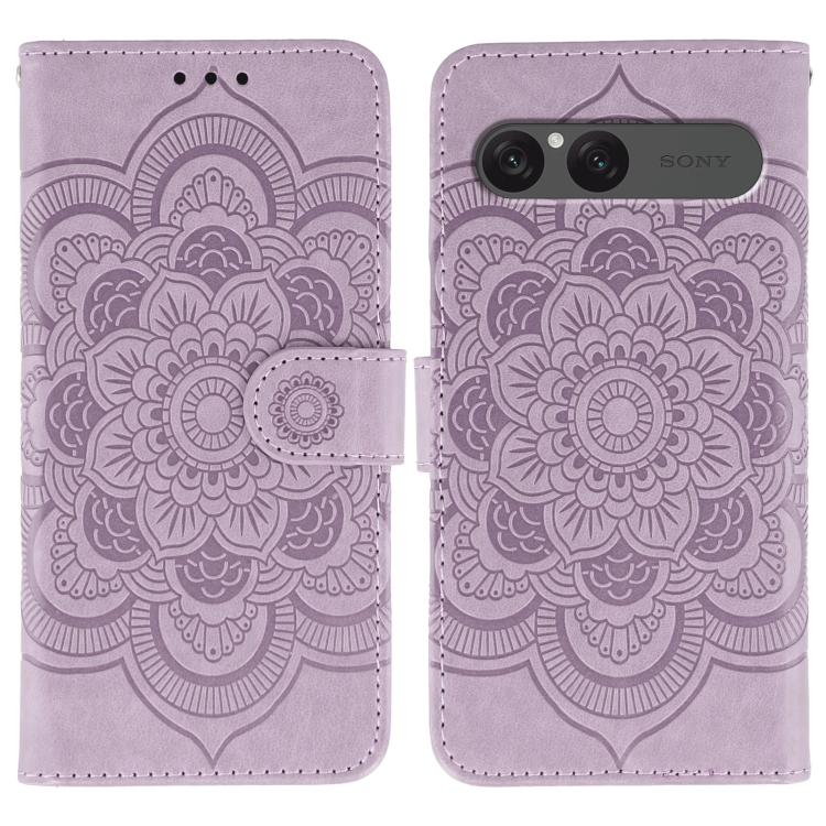 For Sony Xperia 10 VII Sun Mandala Embossing Pattern Phone Leather Case(Purple)