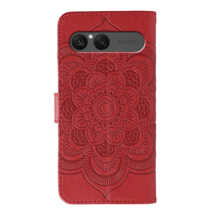 For Sony Xperia 10 VII Sun Mandala Embossing Pattern Phone Leather Case(Red)