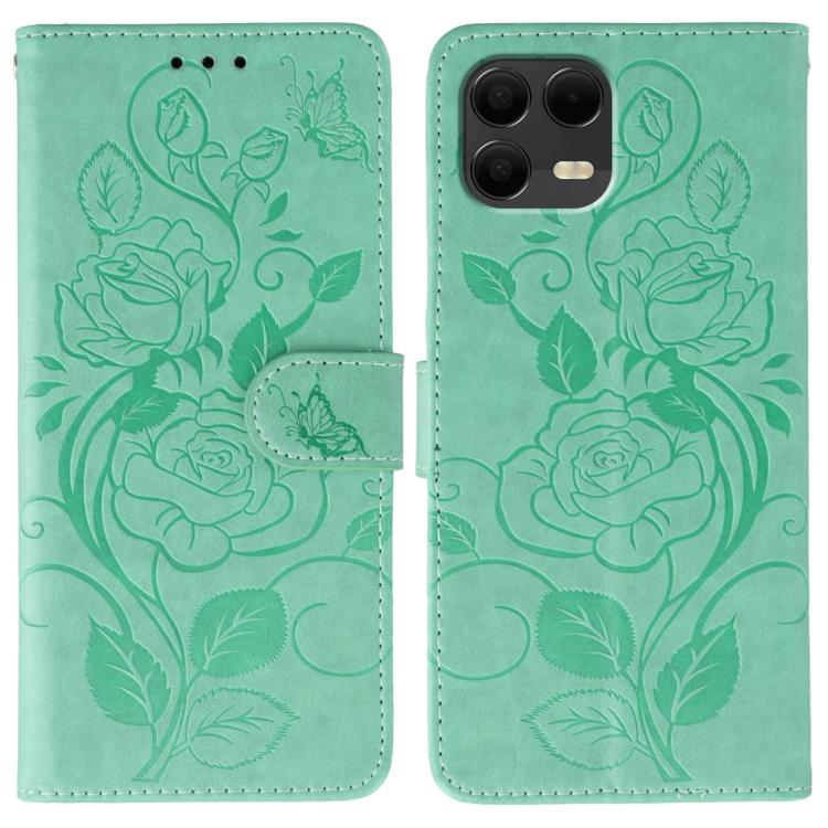For T-Mobile Revvl 8 Pro 5G Rose Butterfly Embossed Leather Phone Case(Green)