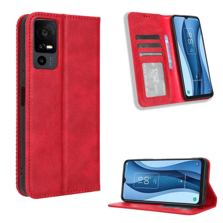 For TCL 40 XE 5G Magnetic Buckle Retro Texture Leather Phone Case(Red)