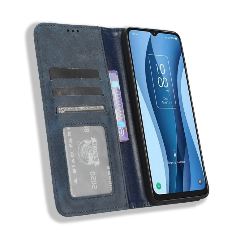 For TCL 40 XL Magnetic Buckle Retro Texture Leather Phone Case(Blue)