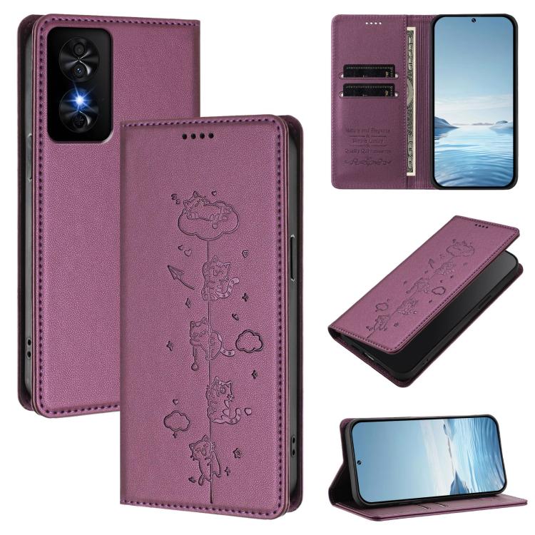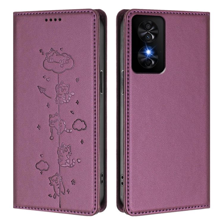 For TCL 50 SE / 40 NxtPaper 4G Cute Cats Embossed Magnetic RFID Vegan Leather Phone Case(Violet Purple)