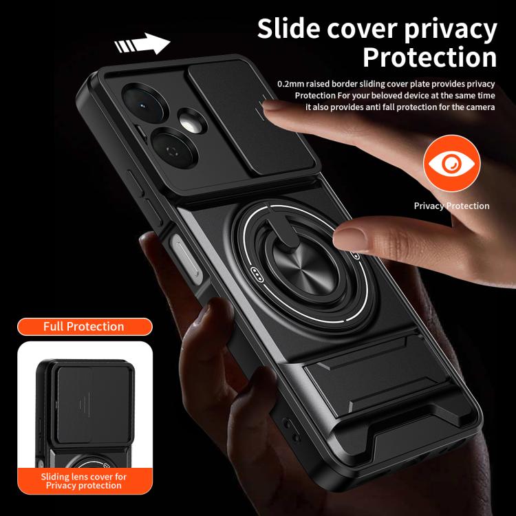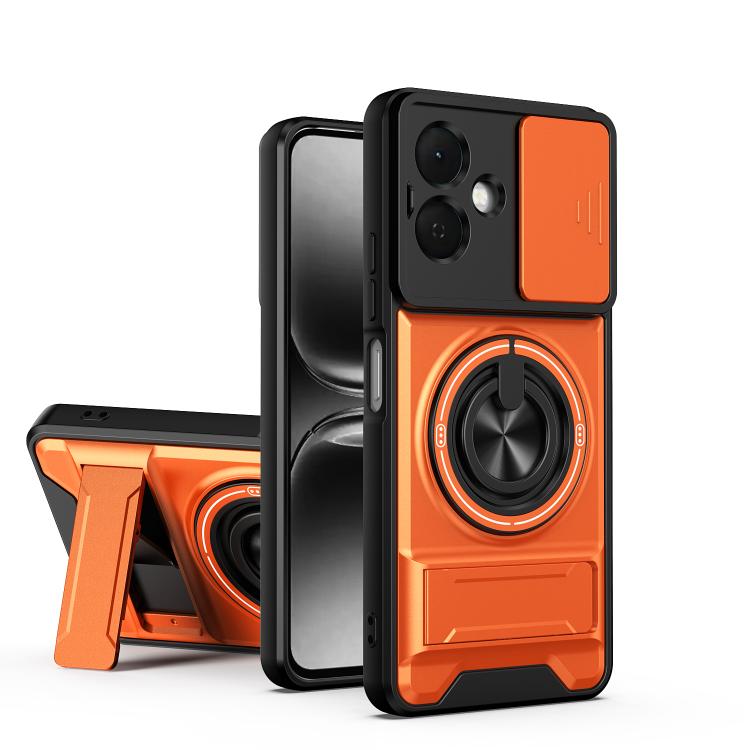 For Tecno Pop 10 / Smart 10 4G Lens Sliding Window Multifunctional Magnetic Shockproof Phone Case(Orange)