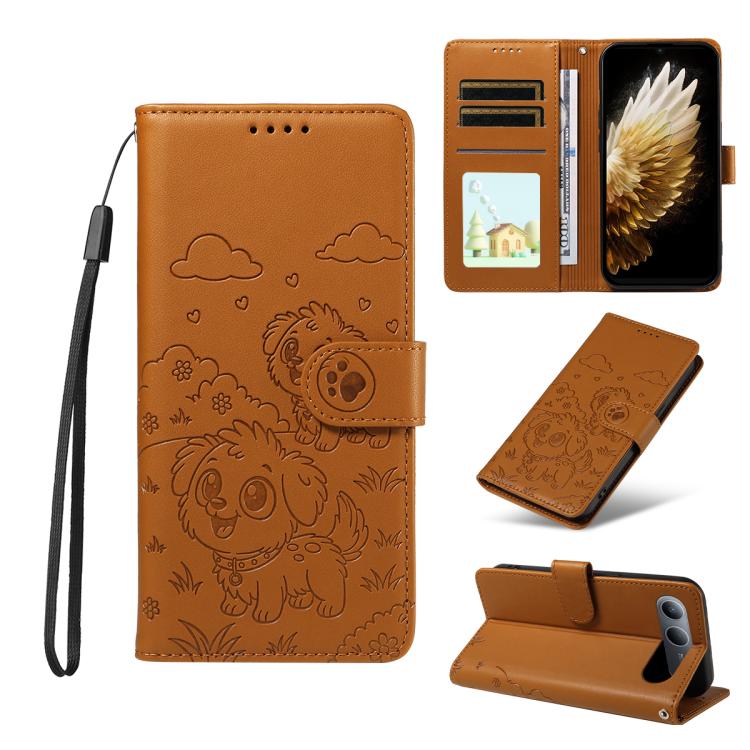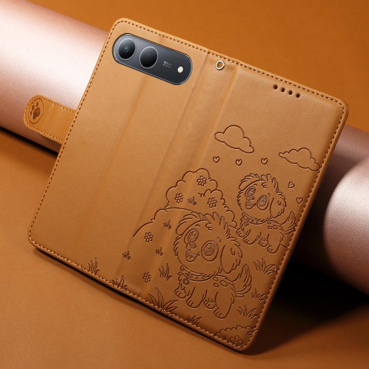 For Tecno Spark 40 5G / GO 5G 2025 Embossed Heart Dog RFID Blocking Wallet Leather Phone Case(Brown)