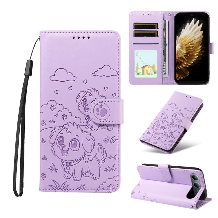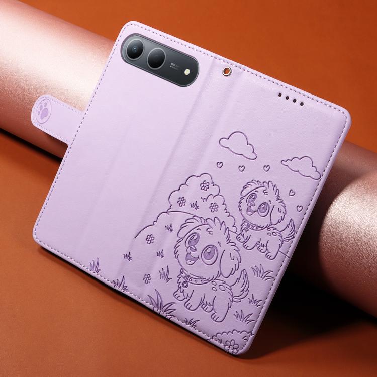 For Tecno Spark 40 5G / GO 5G 2025 Embossed Heart Dog RFID Blocking Wallet Leather Phone Case(Purple)
