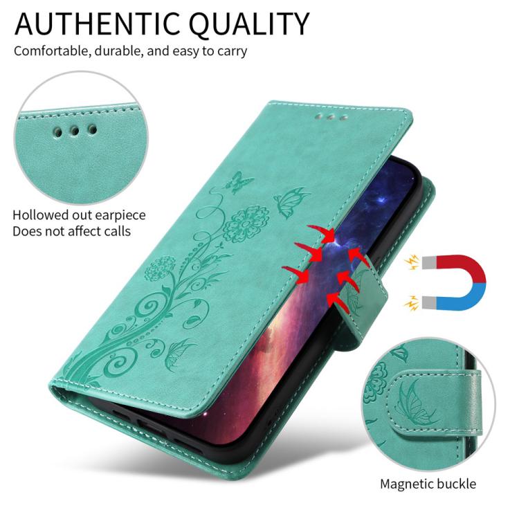 For Tecno Spark 40 5G / Spark Go 5G 2025 Embossed Butterfly Flowers Leather Phone Case(Green)
