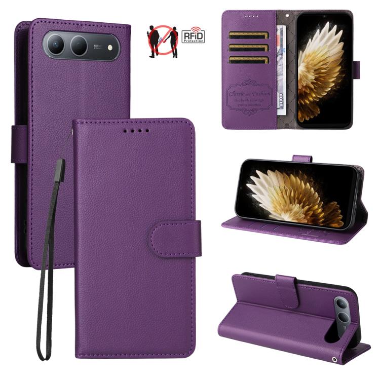 For Tecno Spark 40 5G / Spark Go 5G 2025 Litchi Texture RFID Blocking 3-Card Wallet Leather Phone Case(Purple)