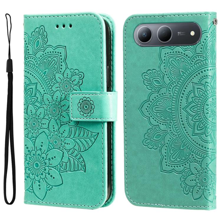 For Tecno Spark 40 5G / Spark Go 5G 2025 Seven-petal Flowers Embossing Leather Phone Case(Green)