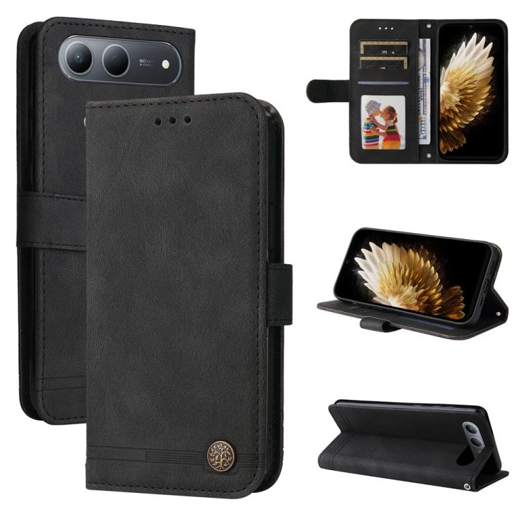 For Tecno Spark 40 5G / Spark Go 5G 2025 Skin Feel Life Tree Metal Button Leather Phone Case(Black)