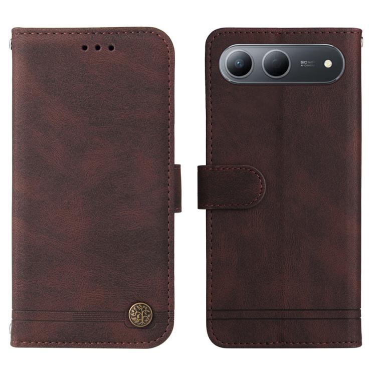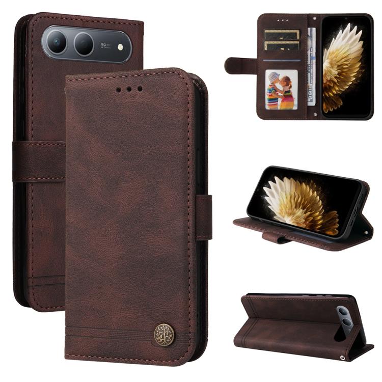For Tecno Spark 40 5G / Spark Go 5G 2025 Skin Feel Life Tree Metal Button Leather Phone Case(Brown)
