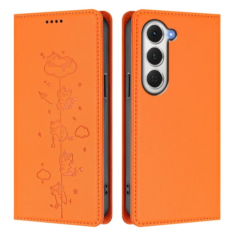 For Tecno Spark 40 Pro 4G Cute Cats Embossed Magnetic RFID Vegan Leather Phone Case(Orange)