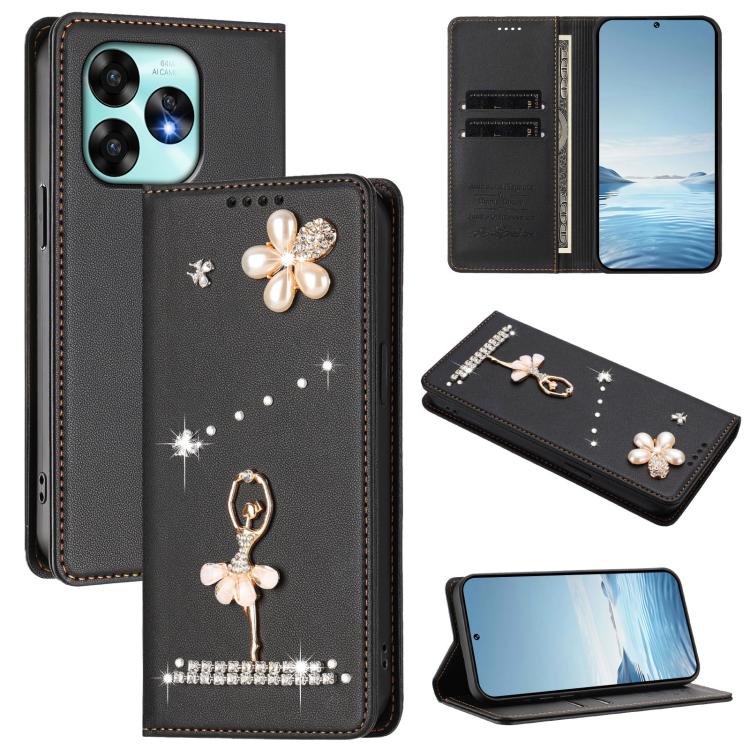 For Umidigi A15 / A15C / A15T Ballet Girl Diamond Studded RFID Vegan Leather Phone Case(Black)
