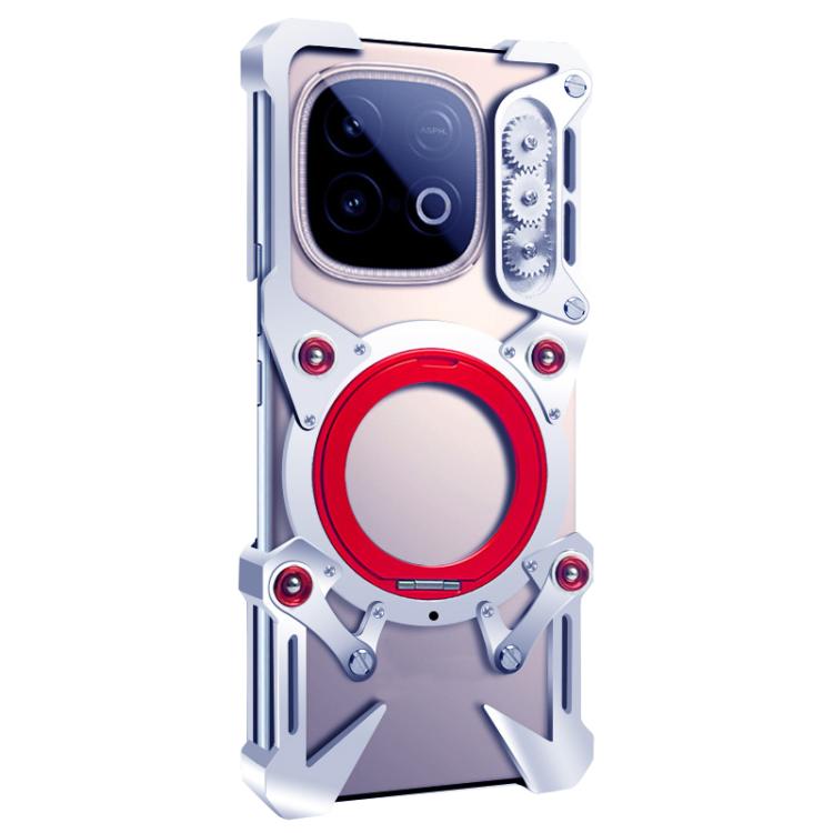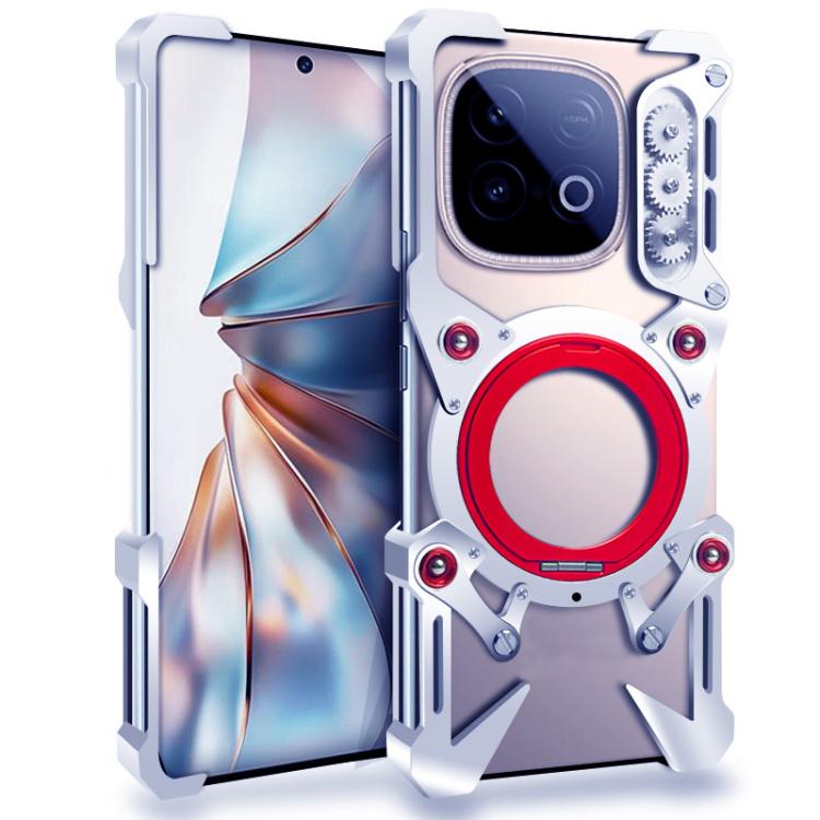 For vivo iQOO Z10 Turbo+ Rotating Bracket Hollow Metal Phone Case with Lanyard(Silver)