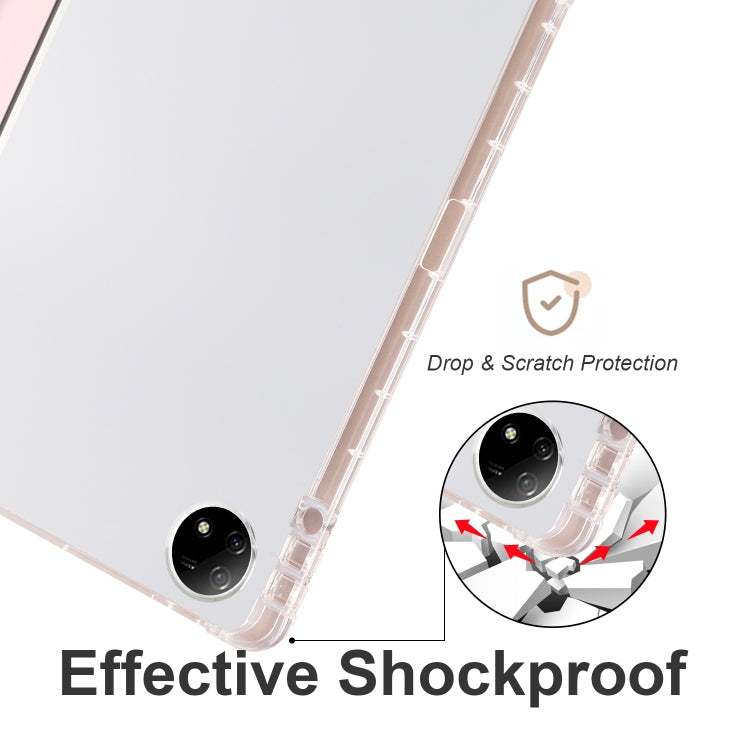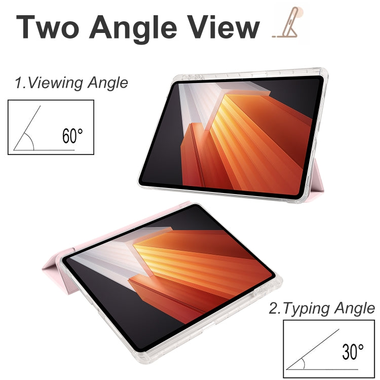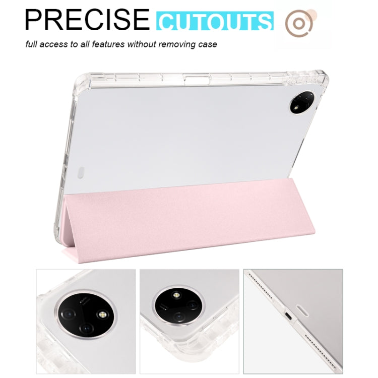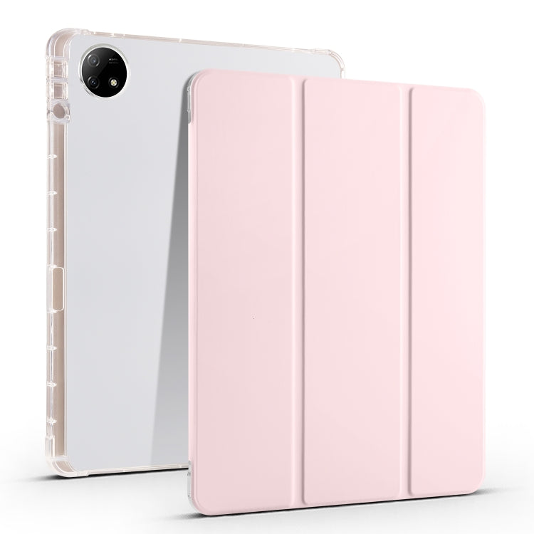For vivo Pad2 12.1inch 3-folding Transparent TPU Smart Leather Tablet Case with Pen Slot(Pink)