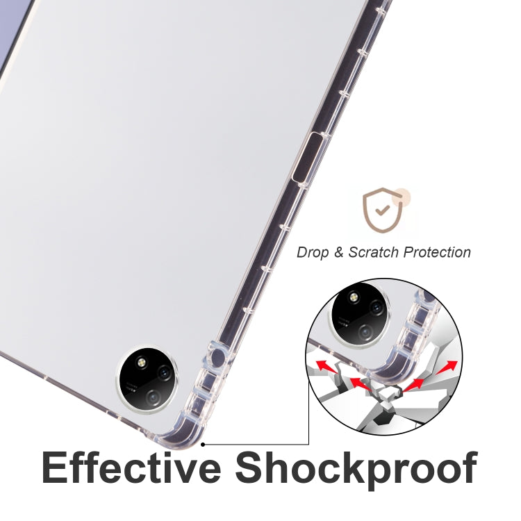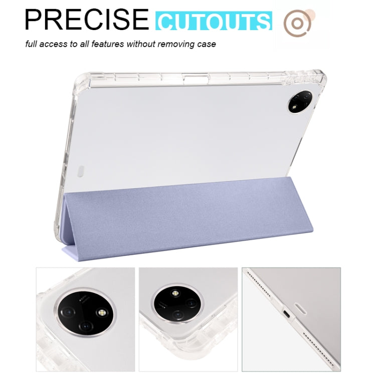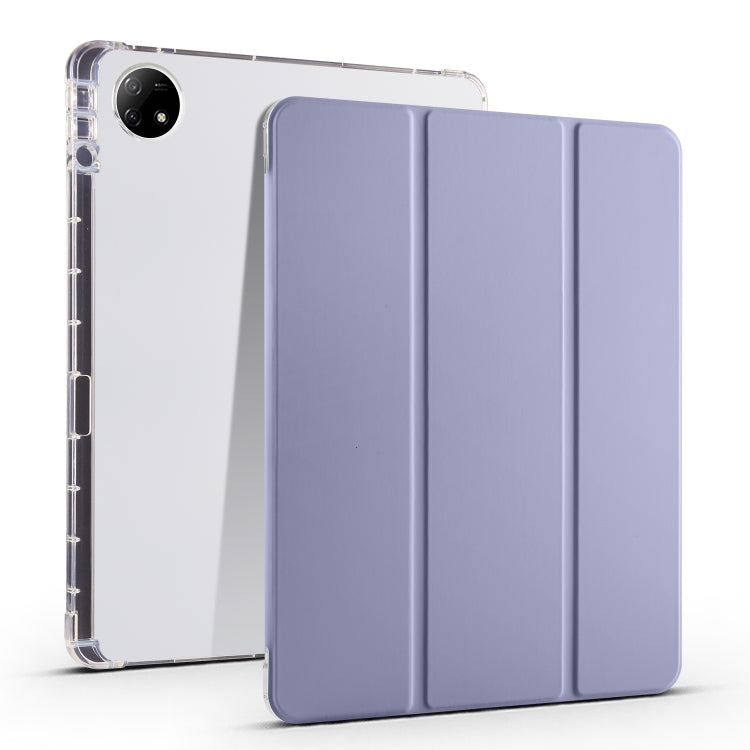 For vivo Pad2 12.1inch 3-folding Transparent TPU Smart Leather Tablet Case with Pen Slot(Purple)