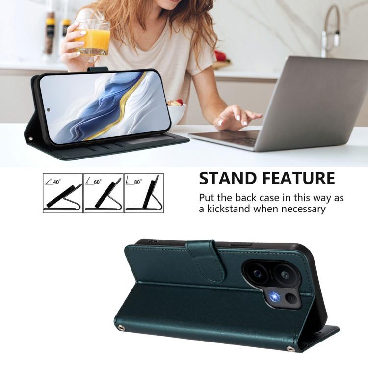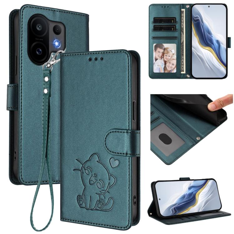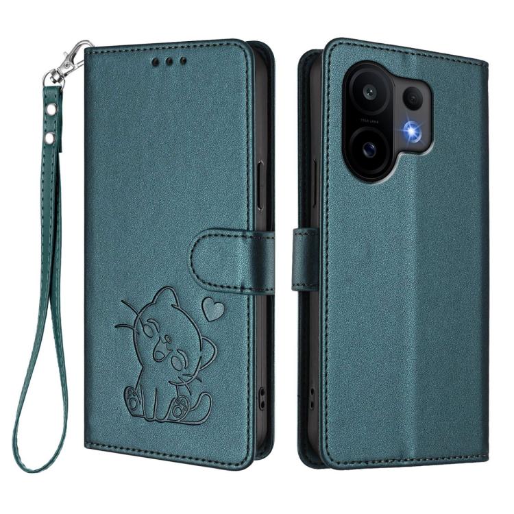 For vivo S30 Embossed Heart Cat Leather Phone Case with Hand Strap(Dark Green)