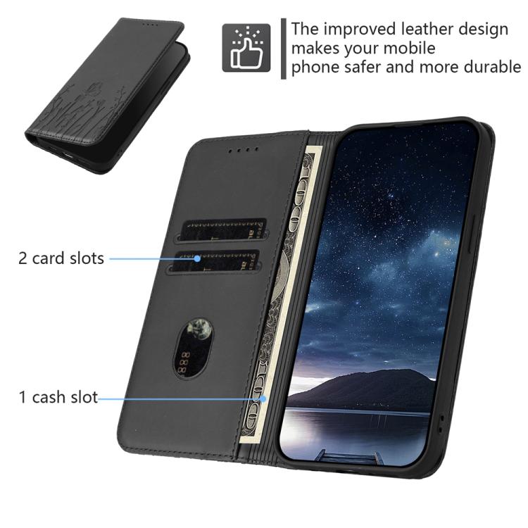 For vivo S30 Pro mini Tulips Butterfly Pattern Magnetic Vegan Leather Phone Case(Black)