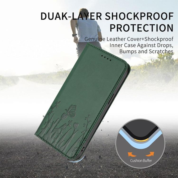 For vivo S30 Pro mini Tulips Butterfly Pattern Magnetic Vegan Leather Phone Case(Dark Green)