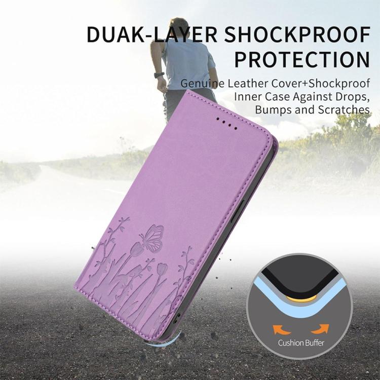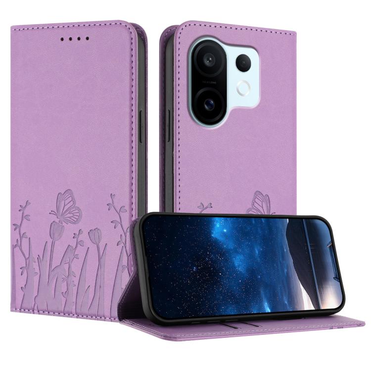 For vivo S30 Pro mini Tulips Butterfly Pattern Magnetic Vegan Leather Phone Case(Light Purple)