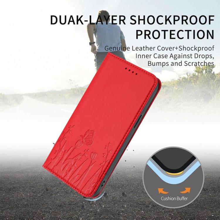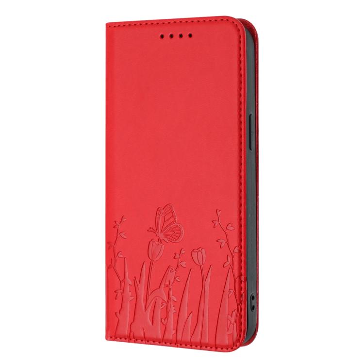 For vivo S30 Pro mini Tulips Butterfly Pattern Magnetic Vegan Leather Phone Case(Red)