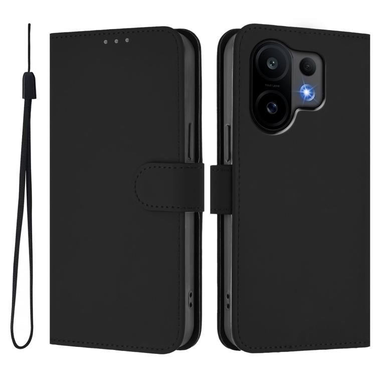 For vivo S30 Skin Feel Solid Color Leather Phone Case with Lanyard(Black)