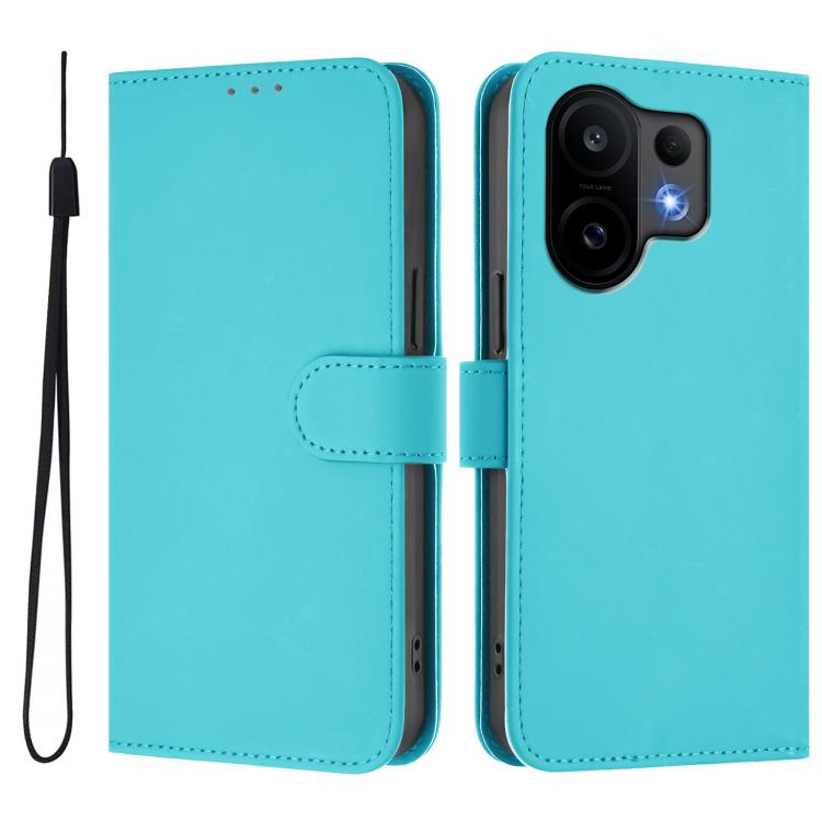 For vivo S30 Skin Feel Solid Color Leather Phone Case with Lanyard(Lake Blue)
