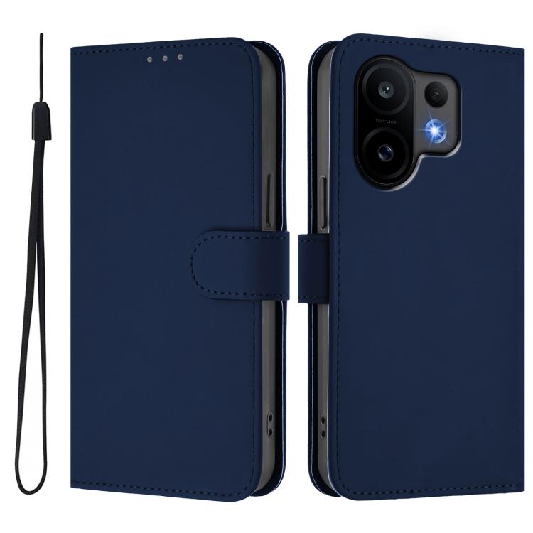 For vivo S30 Skin Feel Solid Color Leather Phone Case with Lanyard(Navy Blue)